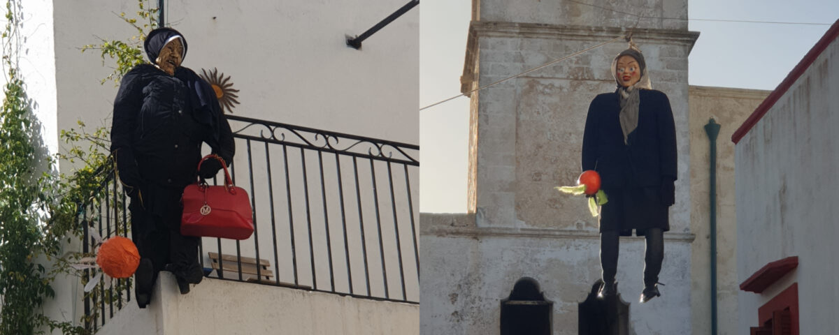 In the Salentine area, for exemple, it was more usual, in the past, walking through the streets of the municipalities during the Lenten period, come across a strange puppet suspended between two balconies or hanging in the middle of the street. The doll was depicted as an old black – clad woman holding the spindle in one hand and a bitter orange pierced by seven chicken feathers in the other.